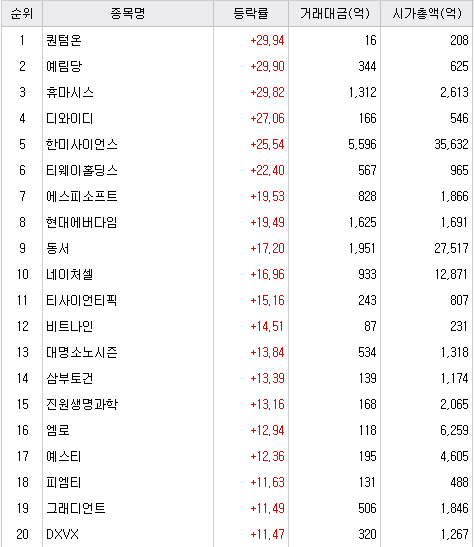 - 한미사이언스 (+25%)