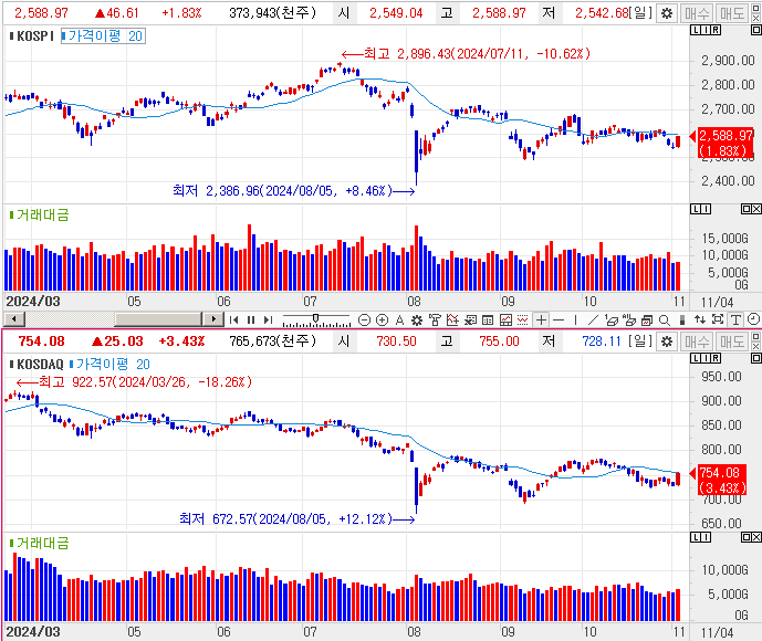 오늘의 주식 시장 (24.11.04) - 금투세 폐지 소식과 주가 상승, 공모주 청약 이제 밴드 상단 초과 안하나