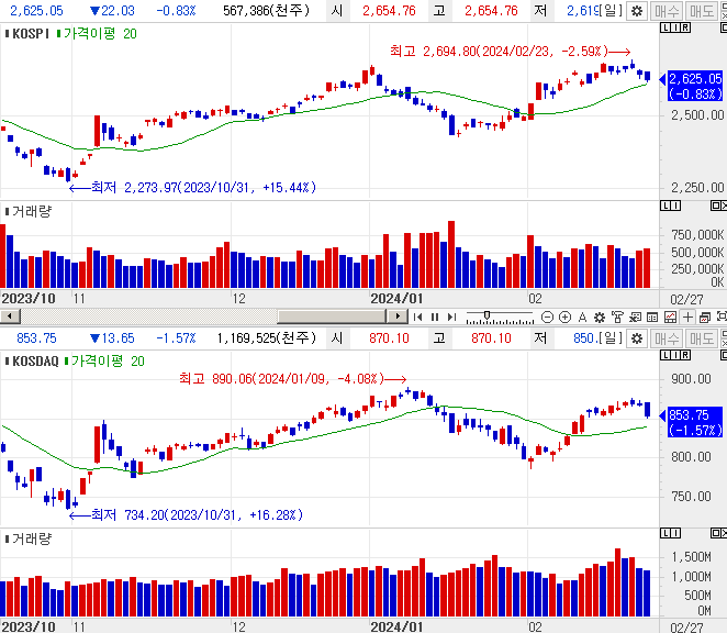 | 오늘의 주식 시황 (24.02.23) - 반도체가 시장을 이끌다 (0) | 2024.02.23 |