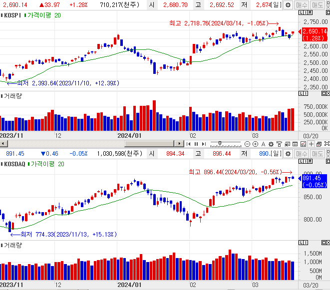 오늘의 주식 시황 (24.03.20) - 반도체, 제약 - 왕의 귀환 (삼성전자 급등!!)