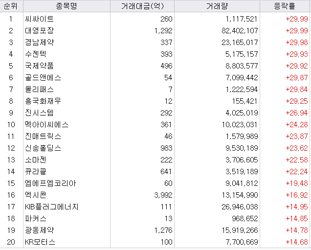 제약주가 상한가를 많이 기록했습니다.