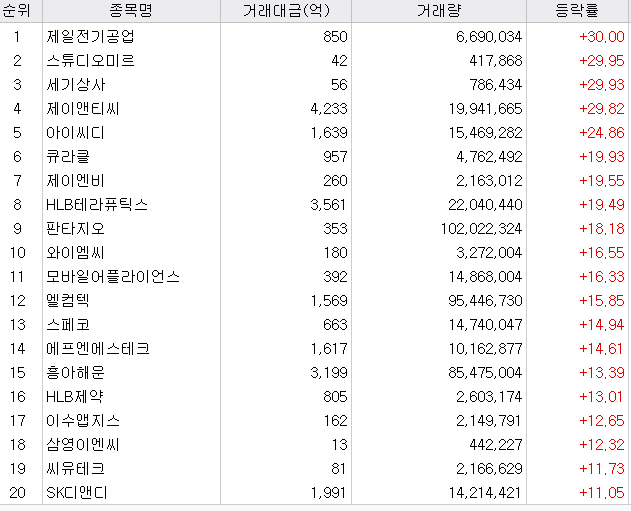 - 제일전기공업 : 전력관련종목으로 상한가를 기록하였습니다.