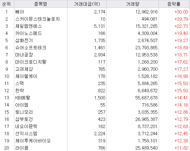 화장품 관련주들이 많이 상승한 하루였습니다.