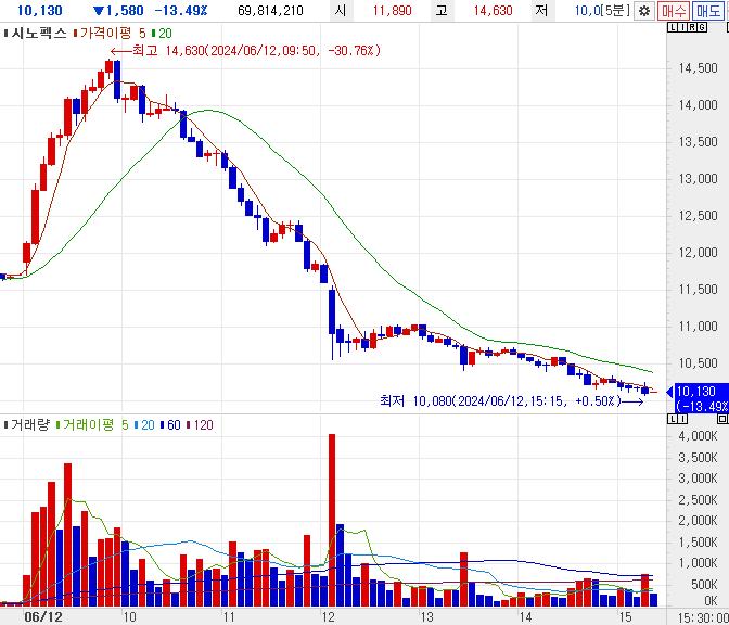 오늘 시노펙스 차트입니다.