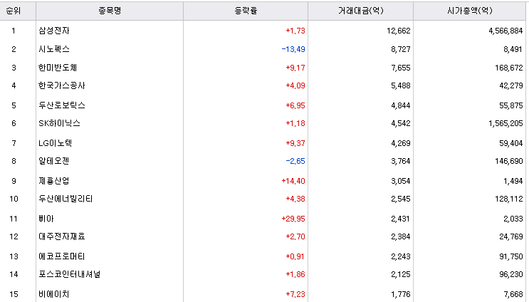 거래대금 1조 2천억을 기록하며 1위를 기록하였습니다.