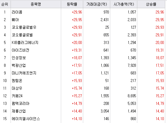 다양한 종목들이 시장에서 모습을 보인 하루였습니다.