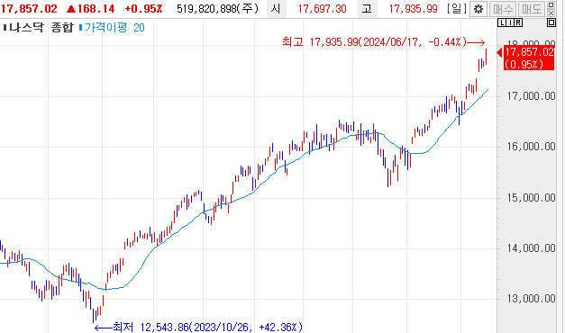 미국 나스닥이 역사적인 신고가를 계속 기록하며 상승 중인 것을 보면 매우 아쉽습니다.