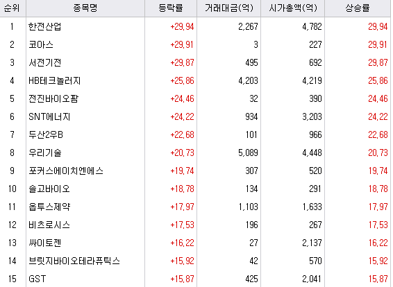체코 원자력 수주 가능성 기대감으로 상승한 종목이 많았습니다.