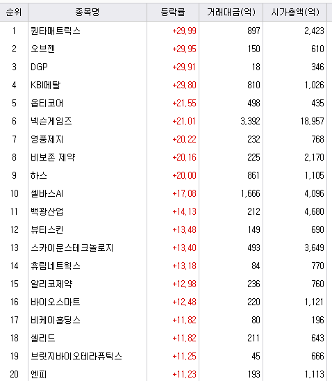 개별종목으로 넥슨게임즈, 셀바스AI가 오르고 있습니다.