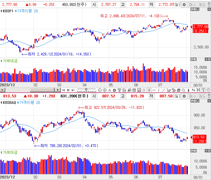 | 오늘의 주식 현황 (24.07.29) - 대왕고래, 금융 관련주가 떠오르다 (0) | 2024.07.29 |