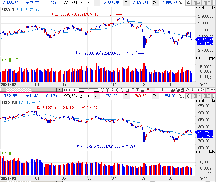 오늘의 주식 시황 (24.10.02) - 삼성전자 신저가 갱신 5만 전자 되다. 언제까지 하락할까