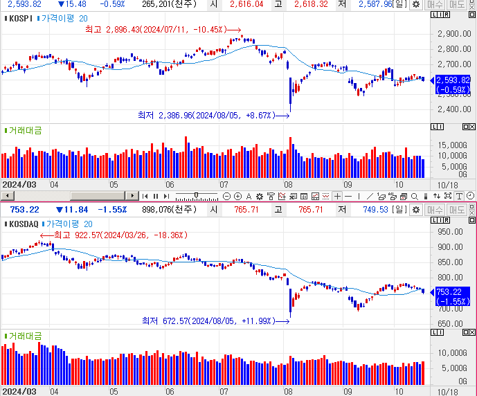 오늘의 주식 시황 (24.10.18) - 두 신규주의 반대되는 행보 (와이제이링크, 인스피어)
