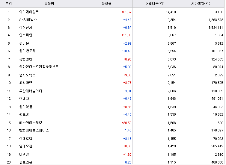 1조4000억의 거래대금을 기록하며, 오늘의 거래대금 1위를 차지한 종목입니다. 신규 상장종목입니다.