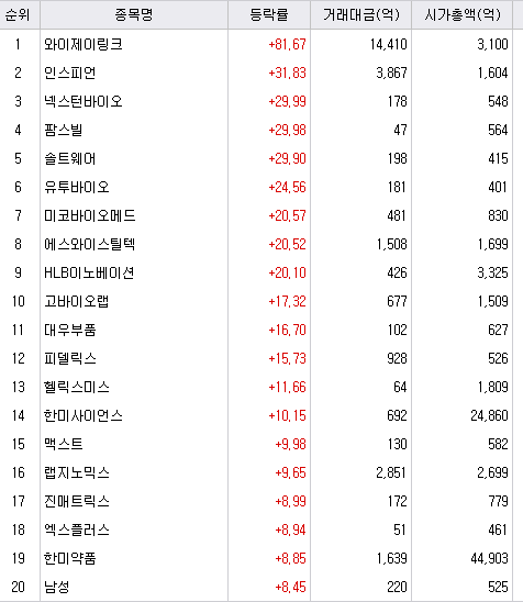 와이제이링크과 인스피언은 신규 상장종목이었습니다.