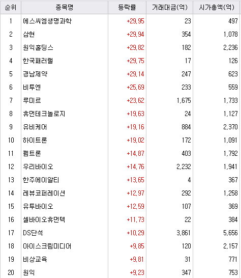 거래대금은 코스피 7.9조, 코스닥 5.4조를 기록하였습니다. 거래량이 적어서 안타까운 시기입니다.