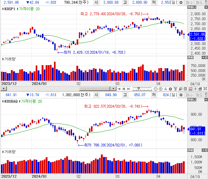 오늘의 주식 시황 (24.4.19) - 석유 - 지수 대폭락의 시작일까?
