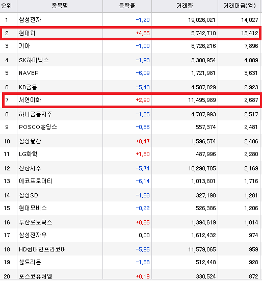 이닉스는 자동차부품 관려주죠. 팸텍은 반도체 장비주입니다. 현재는 거래량 순위에 여러 가지 업종이 섞여 있는 형태입니다.