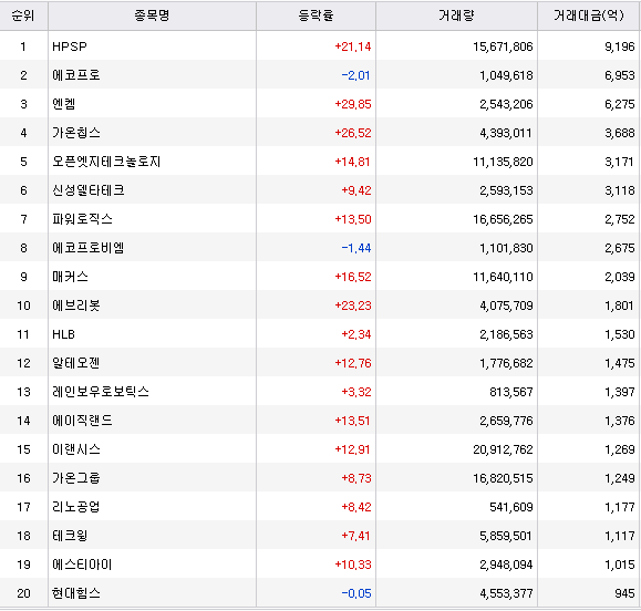 코스피와 코스닥이 모두 상승한 기분 좋은 날이였습니다.