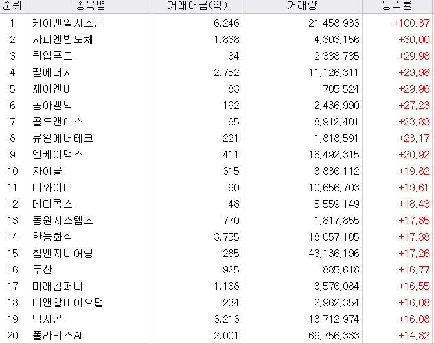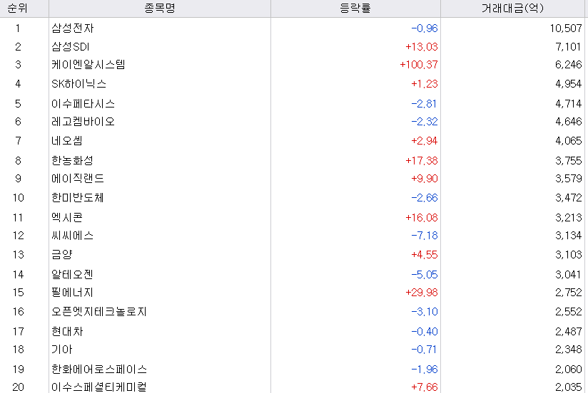 오늘은 2차 전지 관련주와 반도체 관련주가 대장이었습니다.