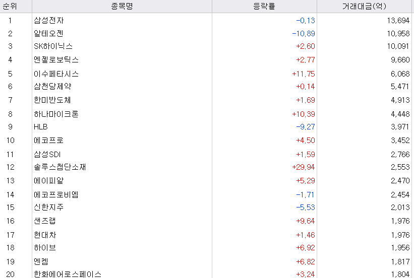 - 알테오젠 : 대표 부인의 블록딜(주식매도) 소식으로 -11%를 기록하였습니다. 관계자의 매도인 만큼 이제 하락으로 예상됩니다.