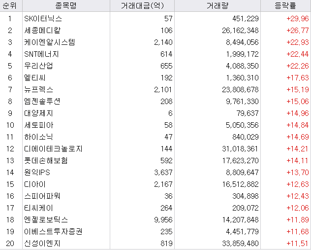 - SK이터닉스 : SK디앤디에서 인적 분할한 종목으로 상장 첫날 상한가로 마무리하였습니다.
