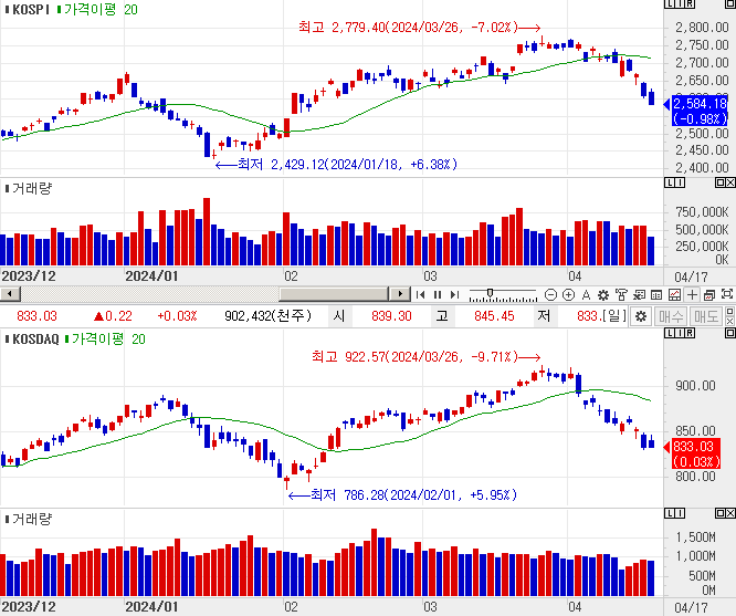 | 오늘의 주식 시황 (24.4.19) - 석유 - 지수 대폭락의 시작일까? (0) | 2024.04.19 |