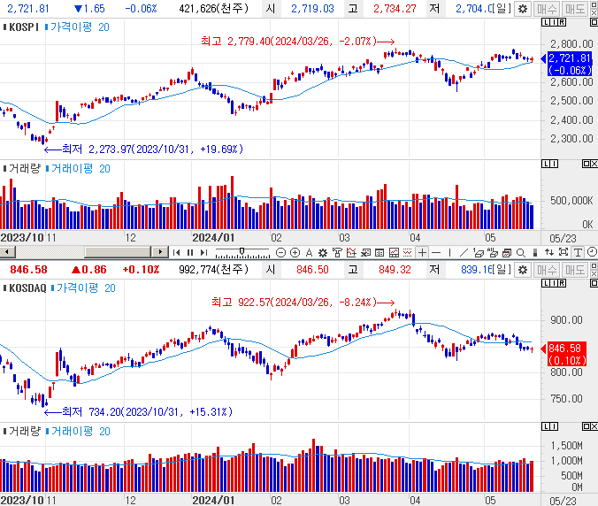 | 오늘의 주식 시황 (24.05.24) - 전력 관련주의 날 - 이삭엔지니어링 상한가 이유, 삼성전자 급락 이유 (0) | 2024.05.24 |