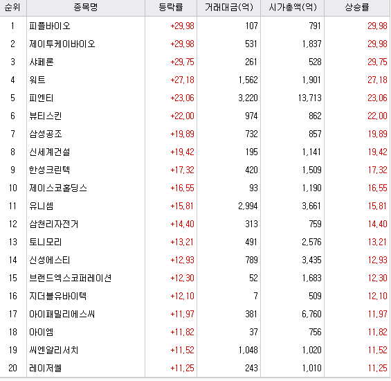 - 피엔티 (+23%)