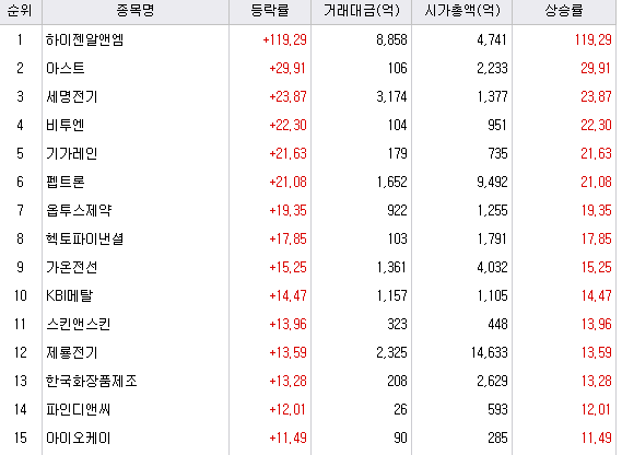 오늘은 전기 전력 테마가 강세를 보인 하루였습니다.
