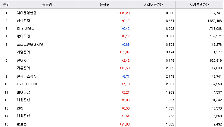 세명전기는 송전선로 수주에 성공해서 급등을 하였습니다. 다만 요즘 전력 관련주들이 AI 전력 소모와 맞물리면서 일제히 상승 중에 있습니다. 오늘도 그런 분위기에 전력주들이 다 같이 상승한 것으로 보입니다. 오늘의 핵심 주도테마였습니다.