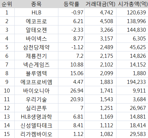 코스닥은 2차 전지 관련주와 제약바이오 관련주들이 지수 상승을 이끌었습니다.