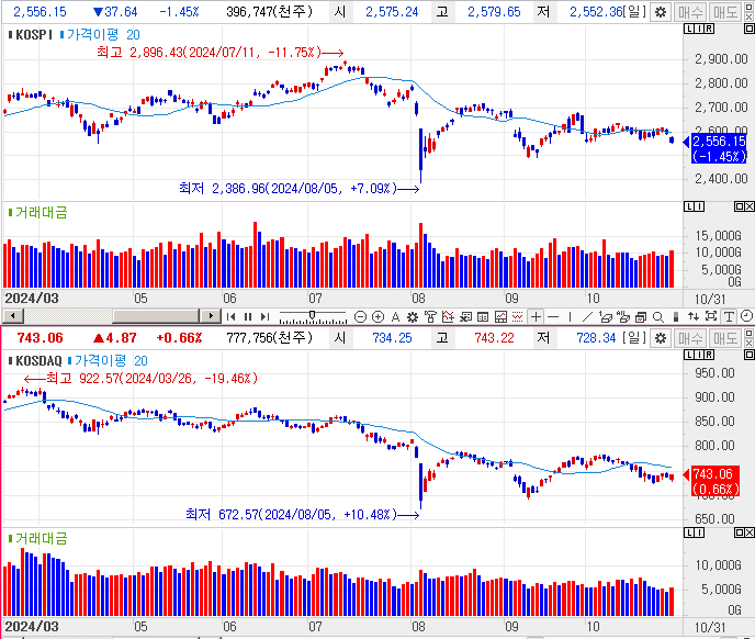 오늘의 주식 현황 (24.10.31) - 주도 업종 없는 하루. 고려아연은 어제 하한가. 오늘은?