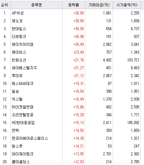 역시 조선업 관련주로, 트럼프 당선인의 발언 영향으로 상한가를 기록하였습니다.