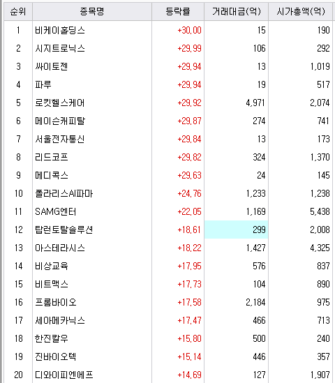 로보티즈와 신규 종목의 강세가 보인 하루였습니다.